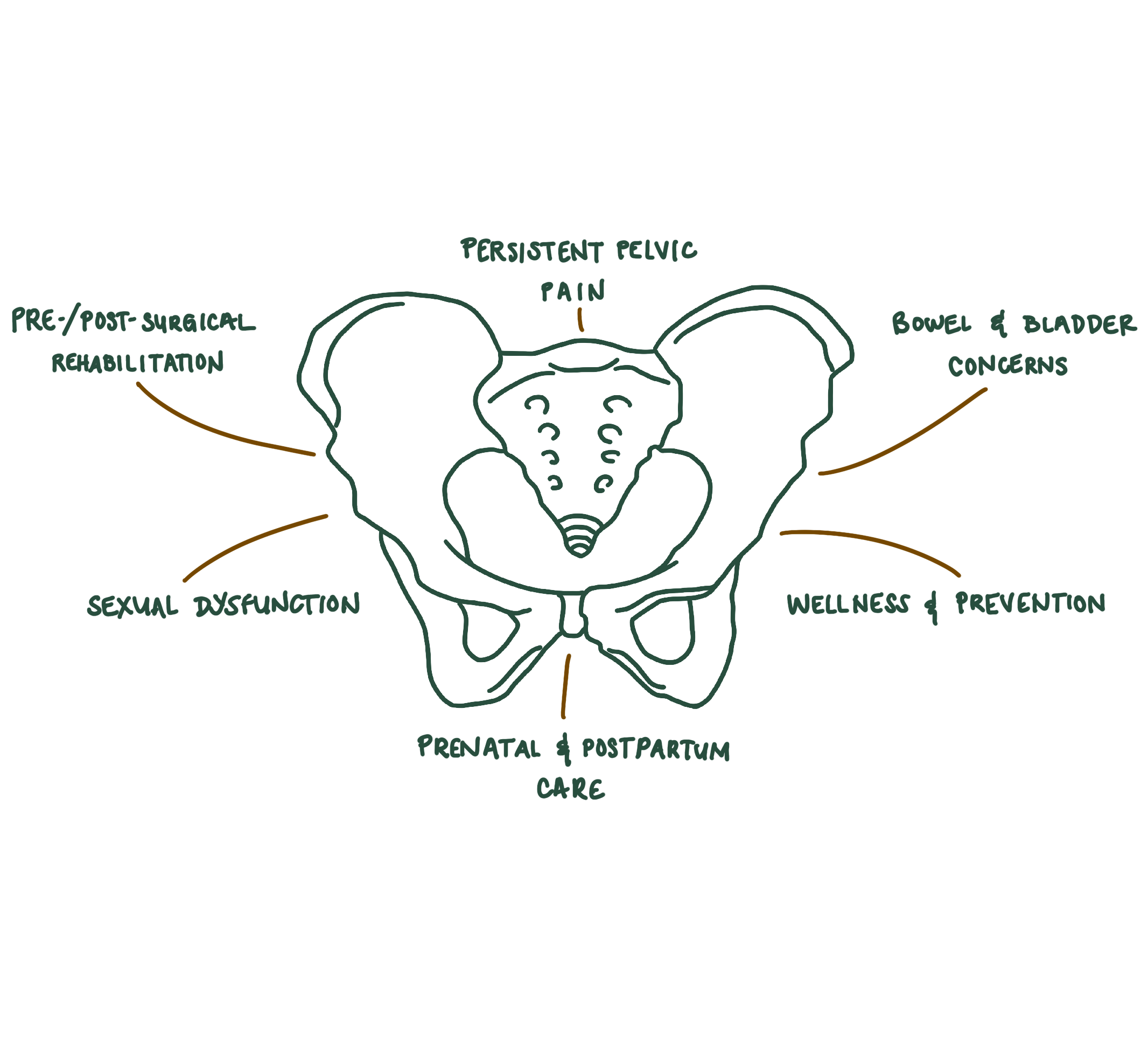 Navigating pelvic floor conditions can feel daunting and isolating. Rest assured, your physical therapist will be with you throughout your pelvic health journey, keeping your needs and goals at the center of your care. She can also help you get connected with other providers and resources for comprehensive, interprofessional support.